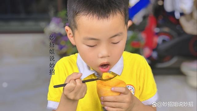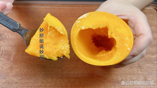 接着,我们拿个勺子直接舀里面的果肉吃就可以了。这样一点也不脏手、不流汁,而且一舀一大块,非常的过瘾。这个方法特别适合给家里的孩子吃,不用担心孩子会将汁水弄得到处都是。