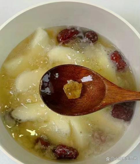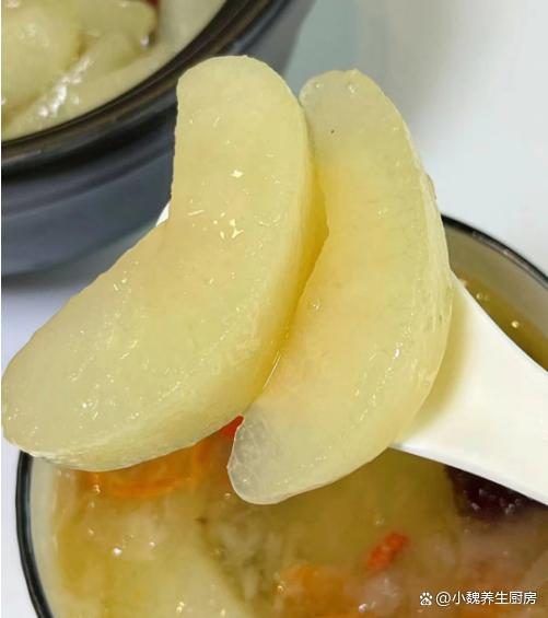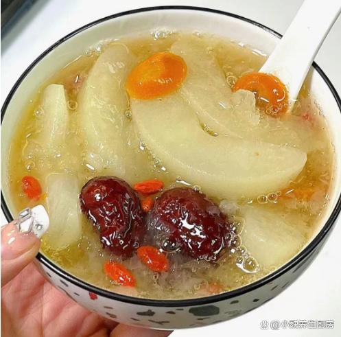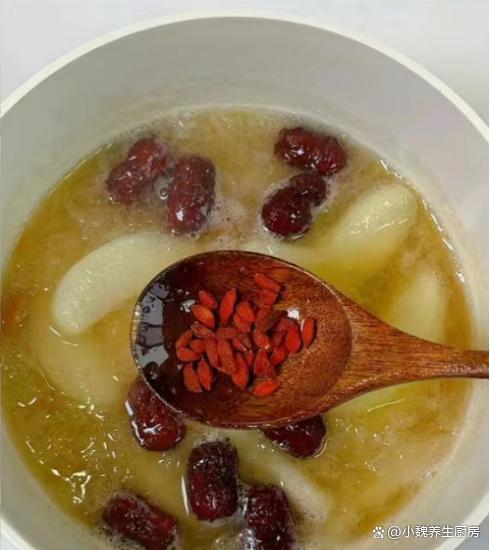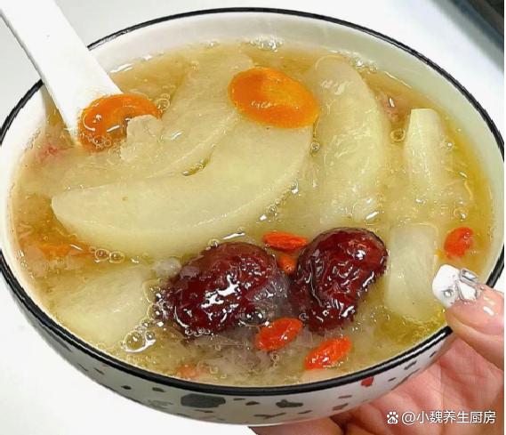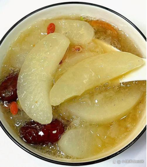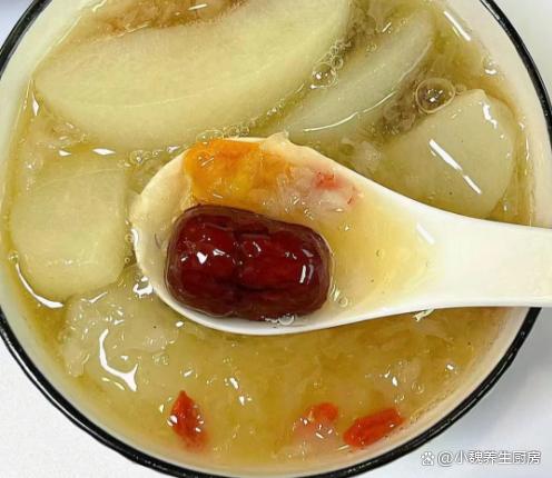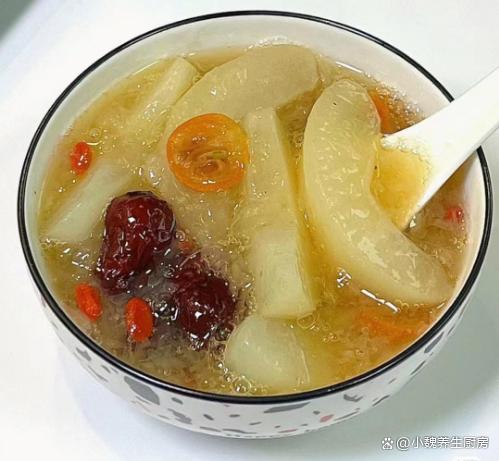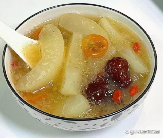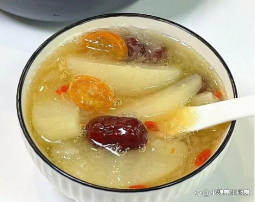咳嗽最怕喝“这碗汤”,平常要多喝它,润肺止咳,补足营养,秋冬少生病!进入金秋十月,我们能够明细感受秋天的味道,现在已经到了深秋,感觉天气发生很大改变,雨水非常充足,平常有一阵阵的秋风,气温也急速下降,身体特别容易着凉,肠胃不舒服,气色会非常差,我们要注意预防感冒,增强抵抗力。秋天气候十分干燥,嗓子不舒服,可以多喝一些润喉止咳的甜汤,让营养更容易消化,对预防感冒有好处。秋季是流感高发的时期,不要总是吃药,平常给家里人多喝这汤——雪梨金桔陈皮银耳汤,做法超级简单,营养极高,让你全身都舒坦。秋季干燥,常给家里人喝这汤,营养全面,润燥去火,脸色更红润。  【雪梨金桔陈皮银耳汤的具体做法】 食材清单:选购新鲜雪梨1—2个(雪梨是高水分,甜度适中的水果,雪梨可以自己生吃,还可以煮汤喝,具有清热润肺,预防感冒的效果),干金桔40克(也可以选择新鲜金桔,金桔是公认的止咳水果,秋冬季节要多吃它),纯净水少许,一朵银耳,若干个红枣,陈皮12克左右,温水少许,冰糖少许,选购枸杞子少许,其他。