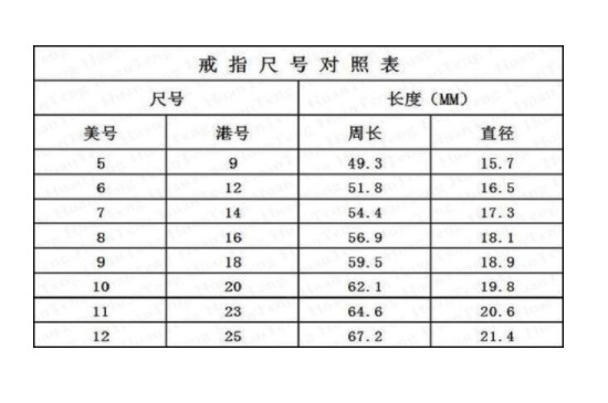 不同国家与不同品牌之间的戒指尺寸对照表各不相同,我国珠宝典和饰品店的戒指大多采用港版戒指对照表,港版戒指对照表的尺寸通常在6-24号之间,在购买戒指前需要提前测量和了解自己的手指尺寸。那么,港码戒指尺寸对照表标准是怎样的情况呢?