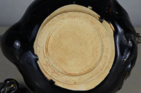 黑定窑瓷器在釉烧制过程中,釉的熔点降低,釉汁沿着器物壁自然流动,会有泪滴状的流釉现象出现,泪滴状不粘底的流釉是一种特殊的美感。 2、胎色