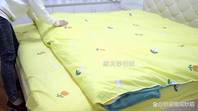 方法二:巧折叠法。 同样的,先将被子平铺在床上,然后把被子的尾部往里面折叠整个被子的四分之一。这样一床被子就变短了。