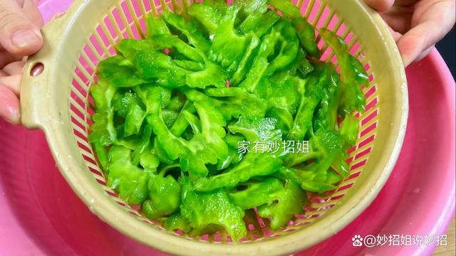 最后,我们将苦瓜放到漏框中,然后用流动水冲洗一下。这样既可以将苦味清洗掉,也能把刚刚腌制的食盐去除,苦瓜就不会太咸。将苦瓜冲洗好后,我们就可以拿去烹饪了。经过这样处理过的苦瓜,苦味就已经大大的减少了,而且,用这个方法处理的还不会造成苦瓜的营养流失。要是你也喜欢吃苦瓜又觉得太苦的话,不妨试试这个方法。如果今天的文章对您有帮助,那就点一个关注,点一个赞,感谢您的支持。