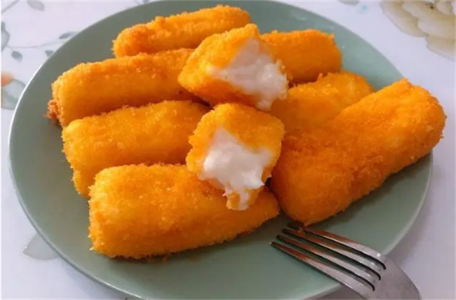 二、制作脆皮炸鲜奶的步骤:(www.ws46.com) 1.准备好500毫升鲜牛奶、适量的玉米淀粉和40克绵白糖。甜度可以根据个人口味进行调整。 选用奶锅或小锅,将三种食材分别倒入锅中。使用小火或中小火,用饭勺或其他工具顺时针搅拌。一开始会是水状,等到稍微有些黏稠时,需要快速搅拌,以免底部糊焦或出现块状物体,这一点非常重要!当混合物达到一定程度的黏稠度后,关火并倒入容器中,最好使其表面平滑,相信你们会做得比我更好。 2.将做好的奶冻放入冰箱冷冻,至少两个小时。不需要盖上盖子,直接放平放在冰箱中即可。 3.经过两个小时或更长时间冷冻后,从冰箱中取出,稍等两分钟。准备好菜板,在容器底部、中间和四周用手掌轻拍几下,将奶冻从容器中倒出,放在菜板上。用刀将其切成适当的长块,宽度和长度要适中。 4.准备好鸡蛋液、玉米淀粉和面包糠。依次将切好的奶冻均匀地裹上淀粉、蛋液和面包糠,确保每个环节都包裹得均匀,不要忽略任何角落,只有这样才能达到最佳效果!这是裹好面包糠的小奶冻块,不要吝啬面包糠。 5.预热锅,加热油,当油温达到五成热时,放入一点面包糠试一下。观察颜色的深浅,如果满意,就开始将裹好面包糠的奶冻块放入锅中。可以少量多次放入,以免手忙脚乱。用筷子迅速翻转奶冻块,使其形成均匀的外形。当颜色看起来合适时,可以用漏勺或筷子捞出,不要炸得时间过长,以免油温过高导致糊底。炸制完成后,颜色会非常漂亮。(超市里的面包糠有白色和橙色两种,可以根据个人喜好选择,只是颜色会有所不同。) 6.这就是最终的成品,摆放在一个漂亮的小盘子里,既赏心悦目又美味可口。外酥内软,香甜诱人,绝对值得大家亲自动手尝试。