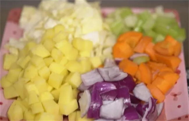 一、罗宋汤的食材: 1个土豆 1个西红柿 1个洋葱 50-100克牛肉 半颗卷心菜 1根芹菜 1个彩椒 适量黄油 番茄沙司