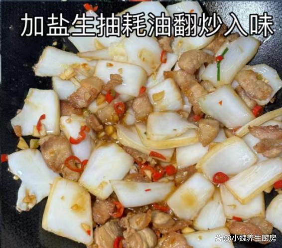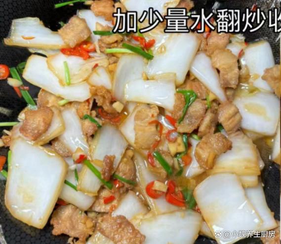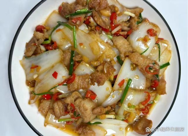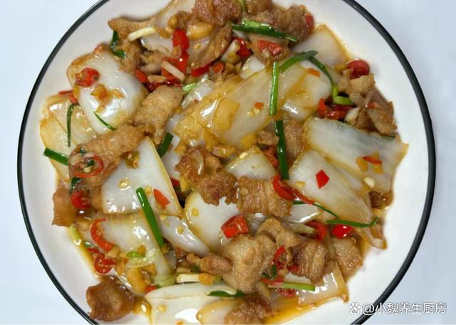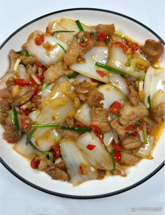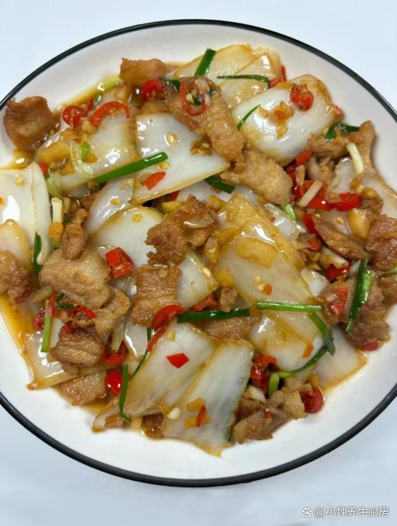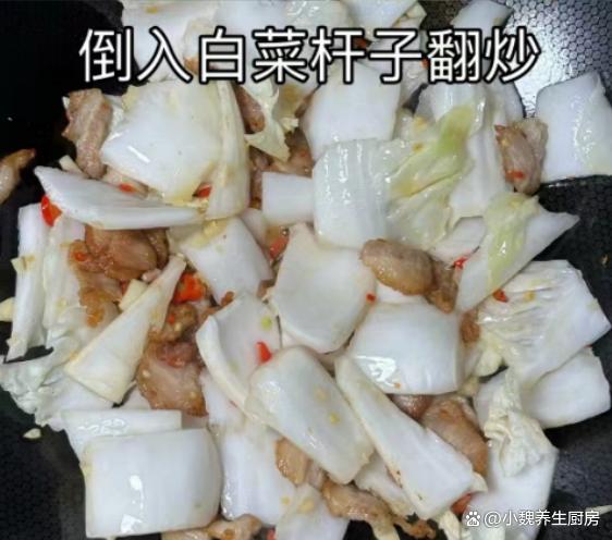 进入深秋,夏季尾声的蔬菜自然都过季了,秋季的蔬菜都陆续上市,由于秋天开始降温,秋雨来临之后,很多新鲜的蔬菜开始上市,比如说白菜,萝卜和莲藕。老一辈人说“吃百菜不如白菜”,白菜是老百姓都吃得起的蔬菜,几毛钱一斤,维生素和水分很丰富,热量和脂肪含量低,因此颇受年轻人的喜欢。很多人经常吃白菜,很多人只会做醋溜白菜,其实白菜有很多种吃法,今天为网友们分享一种白菜的家常吃法——白菜梗炒肉片,简单易学,低脂低卡,不懂吃可惜了。深秋时节,白菜和它是绝配,做法简单,营养解馋,天天吃都不会腻。  【白菜梗炒肉片的正确做法】 食材清单:选购一颗白菜(白菜是秋冬最受欢迎的低脂蔬菜,被称为“百菜之王”,价格非常便宜,既可以做成酸菜,白菜梗还可以用来炒着吃,荤素都能够搭配,吃起来很清爽解腻),选购若干个小米辣,选购半斤五花肉,几片生姜,少许食用油,几个大蒜坨,生抽和老抽少许,半勺蚝油,一小勺鸡精,食盐若干,胡椒粉半勺,其他调味品。