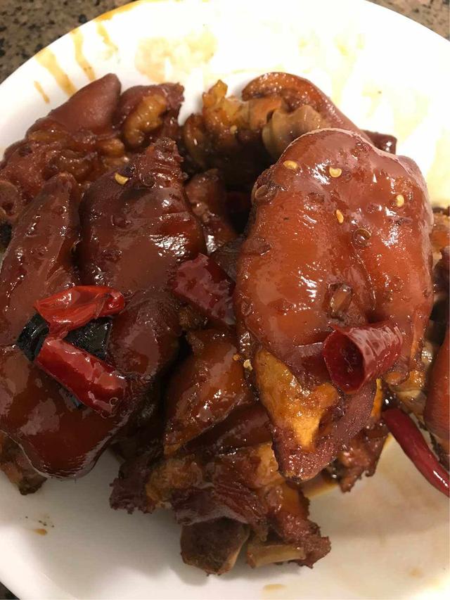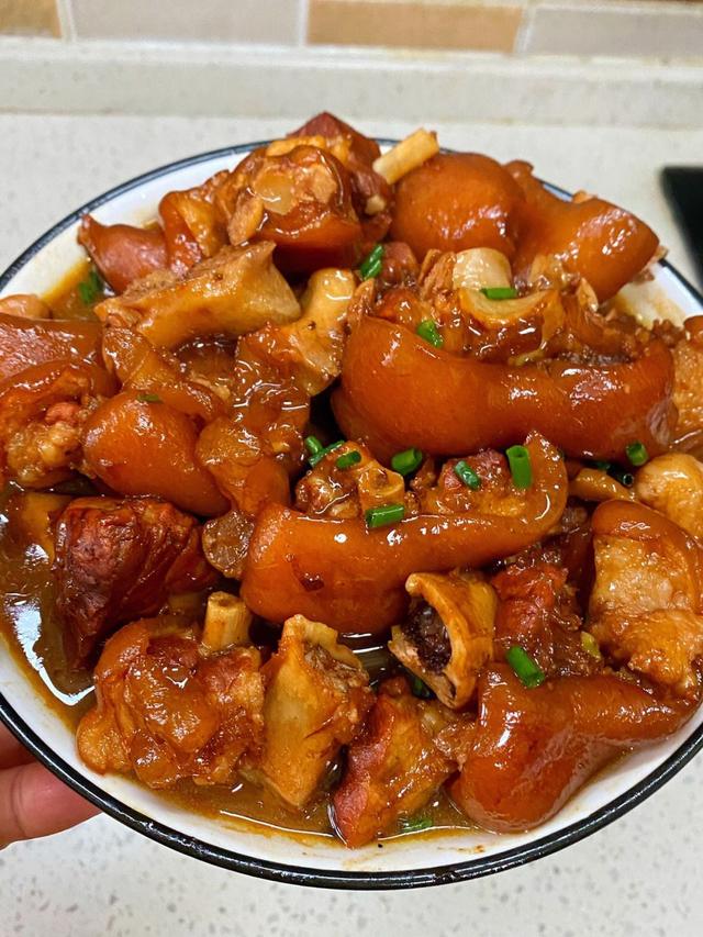 这道红烧猪蹄不仅口感鲜美,而且营养丰富,适合女性在深秋时节食用。猪蹄的胶原蛋白可以改善皮肤,增强免疫力,而红烧猪蹄中的各种香料则可以增加食欲,温暖身体,起到滋补的作用。 当然,除了红烧猪蹄,还有很多其他的猪蹄美食等待我们去探索。比如,炖猪蹄汤、烤猪蹄、猪蹄冻等等。这些美食都可以根据个人的口味和喜好进行搭配和调整。 酱烧猪蹄