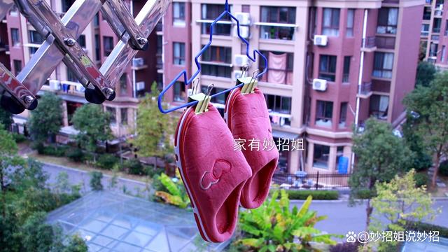 接下来,直接把衣架挂在太阳下晾晒就可以了。我们用燕尾夹来晾晒鞋子,鞋子就是立起来的,这样水分就会顺流而下,鞋子也就能快速的被晒干了,方法简单好用。如果今天的文章对您有帮助,那就点一个关注,点一个赞,感谢您的支持。