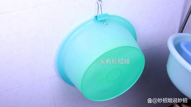 接下来,我们再将一些其他小号的塑料盆都塞在大号塑料盆里,这样家里的各种盆都被收纳好了。而且我们把它挂在墙壁也占不了什么空间,盆里面的积水还会顺着往下流。这个利用燕尾夹收纳塑料盆的方法,简单又好用。