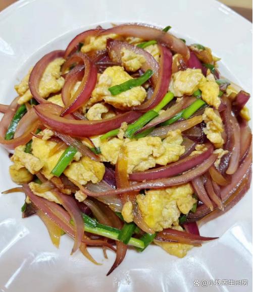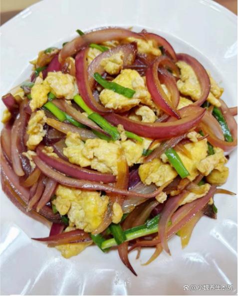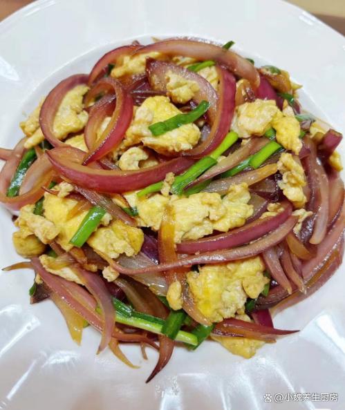 10月,猪肉牛肉靠边站,多给家人吃这菜,解馋下饭,出锅后满屋香。进入10月份,迎来深秋,寒冷的秋天来临了,寒风瑟瑟,一场雨水过后,气温开始开始逐渐降低,空气非常干燥,非常容易上火,口干舌燥,食欲会特别差,不知道吃啥菜。我们家是三口之家,孩子的嘴巴非常挑剔,吃啥都觉得没有食欲。秋季之后,我们都会换着花样给孩子做美食,自己在忙也不能马虎,今天晚餐给家里人制作一道拿手菜——洋葱韭菜炒鸡蛋,色泽诱人,好吃不贵,总吃不腻。  【洋葱韭菜炒鸡蛋的详细食谱】 准备一些食材:选购紫洋葱120克(紫洋葱是洋葱的品种之一,色泽非常好看,吃起来有一些刺激的物质,能够改善食欲,还可以疏通血管,让身体越来越健康,可以荤素搭配,好看又好吃),土鸡蛋3到4个(鸡蛋要选择没有散黄的,土鸡蛋吃起来更香更好吃),新鲜韭菜100克,少许清水,半勺白醋,少许食用油,鸡精半勺,半勺生抽,胡椒粉和白糖少许,其他调味品。 正确制作顺序:第一步:提前选购好洋葱,韭菜和鸡蛋,先把韭菜的黄叶掐掉,切掉韭菜的根部,反复清洗干净,切成长度相同的段,备用。第二步:将紫洋葱的根部切掉,撕掉一层洋葱皮,从对半切开,然后切成若干细丝,洋葱丝用盐水泡一泡,洗净控干水分。第三步:准备好一个空碗,几个土鸡蛋打入碗中,用筷子迅速搅散,调到适量清水,能够让口感更嫩滑,加上一小勺白醋,加上半勺食盐和胡椒粉,将鸡蛋液调配入味。 第四步:热锅冷油烧热乎,鸡蛋液倒入锅中,将蛋液凝固成块,用锅铲快速煸炒,炒熟后盛出,备用。