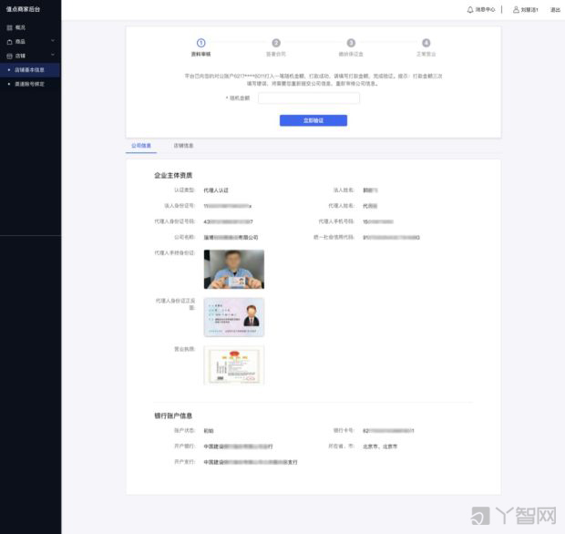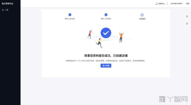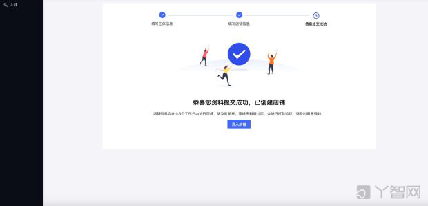 8)平台审核信息 # 提交完成,点击进入店铺,确认进入资料审核。