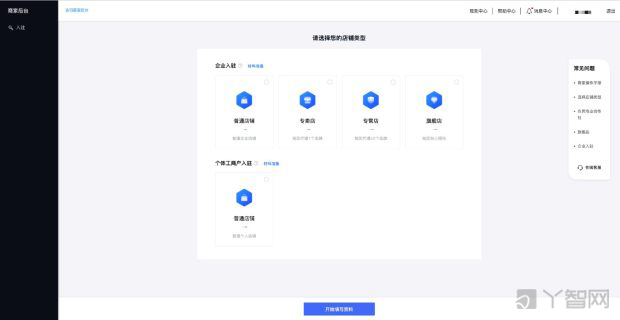 · 若无商标,则选择普通店: o 普通店 · 若有商标,则根据以下要求选择对应店铺: o 专营店:指经营两个及以上品牌的店铺。 o 专卖店:指经营一个品牌的店铺。 o 旗舰店:指以自有品牌或由商标权人提供独占授权的品牌入驻平台开设的店铺。 3) 填写主体信息 提示 可以选择**法定代表人入驻(法定代表人代表公司办理入驻手续)和代理人入驻**(代理人经公司授权代表公司办理入驻手续); • 法定代表人入驻:需要提供法定代表人手持证件人像面照片和法定代表人证件人像面和证件背面照片; • 代理人入驻:需要提供代理人手持证件人像面照片和证件人像面,背面照片和法定代表人证件人像面和证件背面照片。