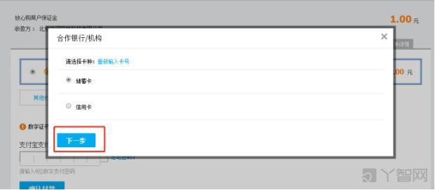 b.使用企业网银支付,完成充值 企业网银支付方法: 点击[添加快捷/网银付款]-[按卡种选择]-选择[储蓄卡],并点击下一步