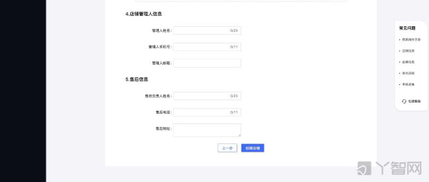 5)店铺管理人信息 店铺管理人信息主要用于:商家提现操作校验、平台公告和通知触达等平台和商家交流使用。 需要提供店铺管理人的姓名、手机号和邮箱(建议使用营业执照法定代表人的姓名) 6) 售后信息 售后信息主要用于:平台提醒商家的售后服务(发货和退货)等平台联系商家使用。