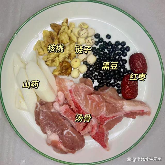 进入10月份,天气突然开始降温,温差也越来越大,气候十分干燥,身体容易“秋乏”,白天会没有精气神,胃口受到很大影响,身体抵抗力很差,一些疾病就入侵我们的身体。由于季节的改变,我们在饮食上功夫,不能总吃太寒凉的食物,为了肠胃的健康,一定多吃热乎乎的食物,早餐多喝暖胃的粥品,晚餐多喝鲜美的汤品,为身体的健康打下基础。最近老公一直在加班,身体特别虚弱,气色会越来越差,可以给家里人做一做这款家常汤品——黑豆核桃山药猪骨汤,几种食材炖一锅,营养又滋补,老少皆宜,让你气色越来越好。“秋季一碗汤,冬天身体棒”,10月多喝这汤,补足营养,增强免疫。