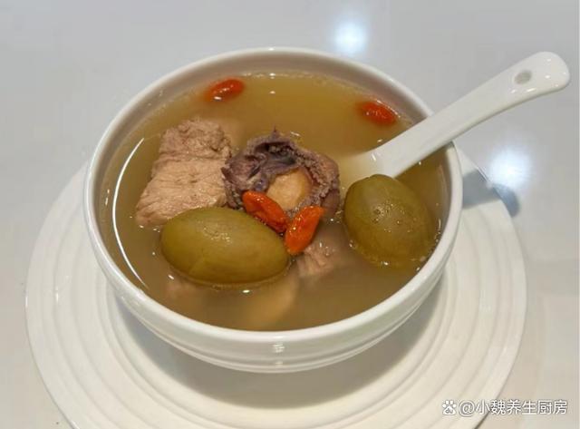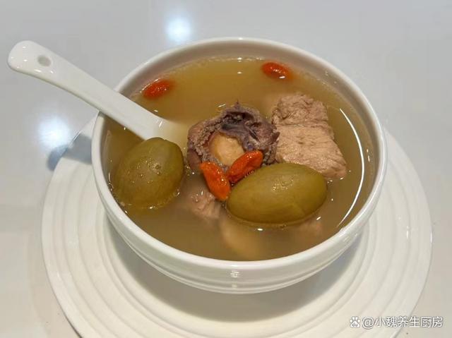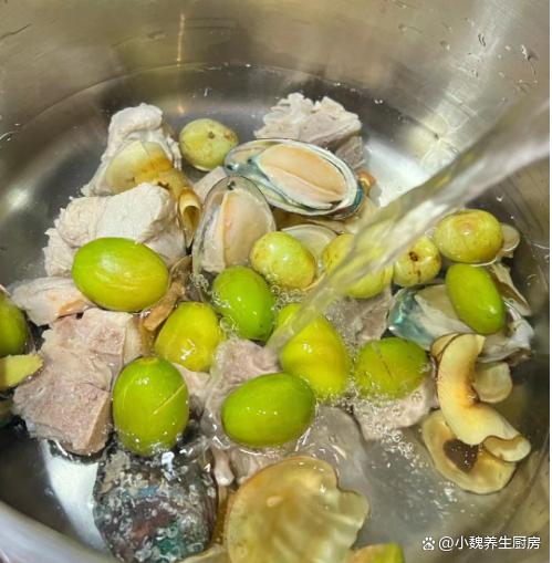 “秋季喝汤,一年不慌”,多给家人喝这汤,营养易消化,增强免疫。俗话有云“秋季喝汤,不用医生开药方”,这句话一直流传到现在,说明秋季喝汤非常重要,汤汁里都是营养,更利于营养的消化和吸收。由于现在处于秋季中后期,最近一直下雨,有时候还刮风,气温慢慢降低,空气湿度很低,人体需要大量的营养和水分来维持正常的生活,需要我们多喝水,多吃新鲜的果蔬,多喝暖和和的鲜汤,能够滋补身体,预防咳嗽和流感,增强身体的免疫力,让你少生病!对于许多广东人,特别喜欢煲汤喝,比如说鸡肉,鸭肉,排骨等等,都是用来煲汤的首选,今天给小伙伴们推荐一款养生滋补汤——橄榄油柑果鲍鱼炖猪骨汤,小白都能够学会,营养全面,不懂吃可惜了。  【橄榄油柑果鲍鱼炖猪骨汤的正确做法】 食材明细:选购新鲜油柑果80克,橄榄80克(橄榄是一种南方常见的野生水果,橄榄吃起来酸涩可口,汁水非常丰富,非常适合拿来煲汤),鲍鱼150克(鲍鱼是一种常见的食材,很多人觉得贵,其实现在平民百姓都吃得起,可以做成各种美食),冷水和温水少许,海底椰30克左右,新鲜猪骨300克左右,生姜15克,食盐少许,胡椒粉半勺,料酒若干,其他。 正确制作顺序: 第一步:提前准备好鲍鱼,青橄榄,油柑果和猪骨,先把青橄榄放在容器里,加上清水和食盐,用盐水泡一泡,清理掉果皮的脏东西,备用。第二步:油柑果也用盐水浸泡洗净,顶部切一些口子,生姜切成一些片状,香葱打成葱结。第三步:鲍鱼反复清洗干净,去掉多余的部位洗净,猪骨提前剁成块状,猪骨用冷水泡出血水,海底椰用清水洗净,准备好一些配菜,开始烹饪这道橄榄油柑鲍鱼炖猪骨汤吧。 第四步:准备好汤锅,锅中放入猪骨和鲍鱼,加上料酒少许,放入姜片和葱段,把两种食材焯水处理,捞出温水冲洗干净,备用。 第五步:锅中放入鲍鱼,猪骨块,海底椰,青橄榄和油柑果,丢入一些生姜片,加上足量纯净水,一定要多放一些水,盖上锅盖焖煮半个小时,中途可以舀掉表面浮沫。第六步:转小火继续炖一个小时,一定要掌握好火候,猪骨汤煲至软烂入味,加上一丢丢食盐和胡椒粉,放入洗净的枸杞子,焖煮一小会儿。第七步:关火出锅,这款橄榄油柑果鲍鱼炖猪骨汤就可以食用了,特别受南方人的喜欢。 橄榄油柑果鲍鱼炖猪骨汤是一款广东人爱喝的鲜汤,青橄榄和油柑果是当地的热门水果,被称为“止咳水果”,既可以生吃,用来煲汤也不错,搭配猪骨和鲍鱼炖一锅,汤汁特别鲜美,营养很出色,补充多种营养,预防咳嗽的情况,让身体免疫力增强。