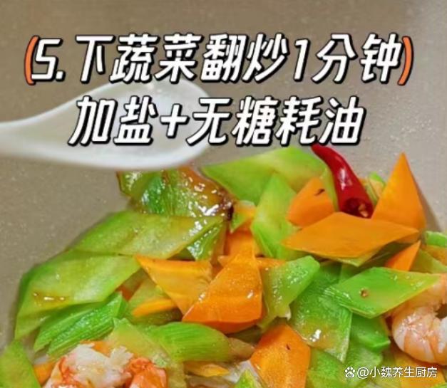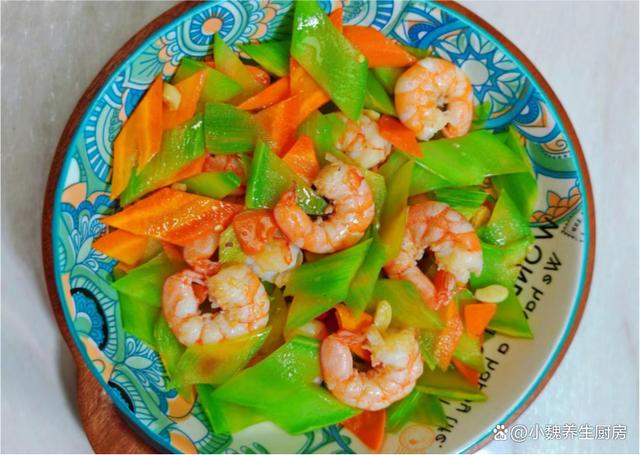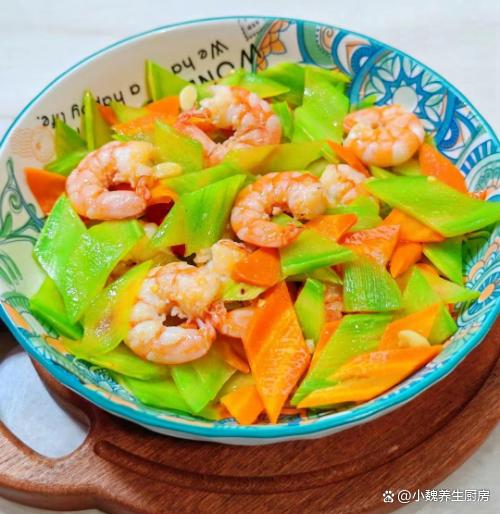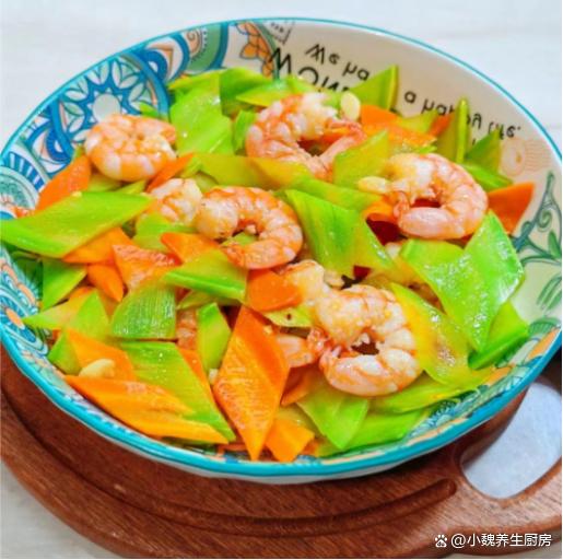进入10月份之后,我们结束了小长假,开始新一轮的忙碌之中,最近心情非常好,工作也有条不紊,但是孩子不爱吃饭,猪肉牛肉都不爱吃。现在处于秋季中后期,天气慢慢转凉,树叶开始凋零,阳气开始锐减,阴气旺盛,我们需要顺应季节的变化,适当做出改变,饮食要合理搭配。多吃地中“土人参”,比如说胡萝卜,莴苣和白萝卜。今天准备用胡萝卜,莴笋,大虾制作一道家常的菜肴——莴苣胡萝卜炒虾仁,几分钟就出锅了,色泽诱人,清甜解腻,我们一家人都爱吃。10月,吃猪肉牛肉,不如吃这菜,解馋开胃,营养美味,不吃可惜了。  【莴苣胡萝卜炒虾仁的正确做法】 食材明细:选购胡萝卜2根(胡萝卜是色泽好看的常见蔬菜,老少皆宜,口感特别清脆,荤素都可以搭配一起吃),选购新鲜莴苣一根(莴笋又叫莴苣,是一种绿色的根茎类蔬菜,色泽为青绿色,吃起来清甜解腻,秋季是最佳食用时期),挑选新鲜大虾250克(大虾是高蛋白高营养的食材,虾肉肉质细嫩,可以有多种食用方法,吃起来很解馋),若干片生姜,大蒜头若干个,食用油若干,半勺料酒,生抽少许,冷水少许,白糖和食盐少许,其他佐料。 正确制作步骤: 步骤1:提前选购好新鲜大虾,莴苣和胡萝卜,先把莴苣的叶片剥掉,顺着外皮去掉白茎,切成若干菱形片,备用。步骤2:将两根胡萝卜洗干净,去掉萝卜的外皮,先切成段,然后切成菱形片,大蒜头去掉蒜皮,切成一些蒜片,几片生姜切成细末。 步骤3:把大虾的虾头去掉,顺着虾尾挑出虾线,剥掉虾壳洗干净,锅中放入一些清水,加上葱结和料酒,将虾仁焯水一分钟,用温水冲洗干净 步骤4:锅中煮一些清水,倒入胡萝卜和莴苣片,滴入食用油,加上半勺食盐,将其焯水几分钟,准备好两种配菜和虾仁,开始制作这道莴苣胡萝卜炒虾仁。 (www.ws46.com) 步骤5:锅底调入少许油,等待油温慢慢烧热,放入一些姜末,蒜片和小米辣,快速爆炒出香味来。 步骤6:倒入莴苣和胡萝卜,将其炒至断生,最后倒入焯水好的虾仁,加上半勺生抽和蚝油,加上一小勺水淀粉,加上食盐半勺,胡椒粉半勺,最后加上鸡精和胡椒粉,用锅铲迅速爆炒一会儿。步骤7:关火装盘,这道莴苣胡萝卜炒虾仁就可以食用了。 莴苣胡萝卜炒虾仁是一道色香味俱佳的家常菜,很多人被他的菜色所征服,口感吃起来清甜解腻,虾肉肉质很鲜嫩,胡萝卜含有大量的胡萝卜素,莴苣的维生素和钾元素含量丰富,加上高蛋白和高营养的虾仁,几种食材炒一盘,营养又美味,满足我们日常身体需要的营养,吃起来很下饭。 小伙伴们,你们是否吃过这道莴苣胡萝卜炒虾仁呢?(文中配图都出自网络)