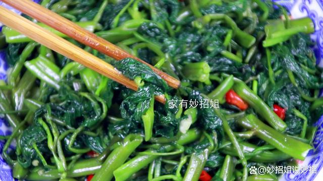 第六种:空心菜。 现在正是空心菜大量上市的时候,它营养丰富,而且价格实惠。不过我们在烹饪空心菜的时候,也要记得焯水处理。因为空心菜中同样含有一定量的草酸。而焯水处理,在去除空心菜中草酸的同时,还能使其色泽会变得更加鲜艳、明亮。而且焯水还能使空心菜更加易于烹饪,保持其清脆的口感,不会因为长时间的炒煮而变得软烂。