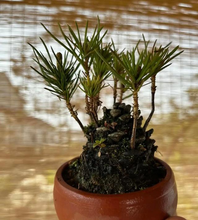 而且他说,如果是刚刚拿到手的松果,里面如果还有松子的话,更是可以培养成小盆栽,取来一盆疏松透气的土壤,把这样的松果1/2栽种到土壤里,将其放置在明亮处,保持土壤微湿,大概经过一段时间后,便可以逐渐发芽,慢慢的培养成一个小盆景,精致漂亮,超级好看。 后来经过跟他的深度交流,才知道原来松树身上全是宝,比如松树皮也可以拿来养花,比如垫在花盆的底部,或者混合在土壤里,都可以改良土壤的性质,增加土壤的通透性和排水性。而松针土,在养花过程中更是有出其不意的效果。比如在培养君子兰兰花等一些根系比较薄弱的花卉时,松针土就尤为重要了。