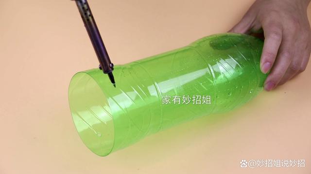 另外再跟大家分享一个利用塑料瓶改造收纳雨伞的神器。我们只要拿个大号的饮料瓶,然后将饮料瓶的底部切割掉一点。