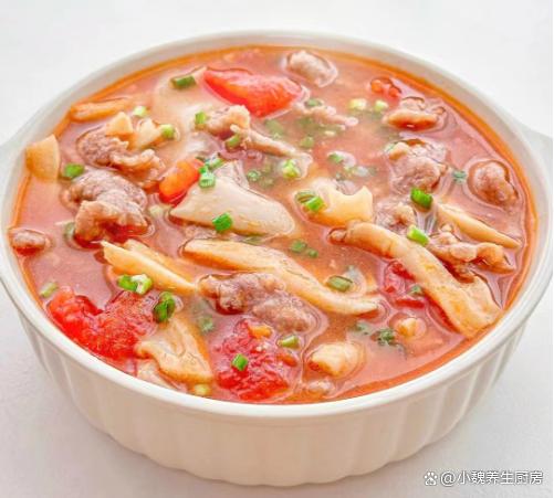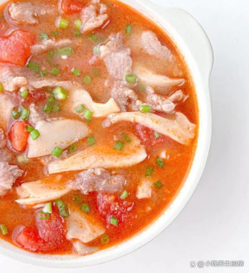 进入十月,金秋岁月,是下半年最舒服的时候,我们熬过最热的时候,迎来凉爽的秋天,一阵阵微风拂面,还有一丝丝的凉快,气温也逐渐降低,但是感觉身体很舒服,白天和晚上都想睡觉,整个人都没有精气神。其实秋冬要想身体棒,一定要抓住秋季的养生期,秋冬的天气会越来越寒冷,我们需要大量的营养,才能抗住严寒的天气,需要按时补充能量,许多长辈们称为“贴秋膘”。很多人理解出现错误,贴秋膘不是大鱼大肉乱吃,是要我们健康搭配,平常多吃新鲜的水果,多喝鲜美的汤品,帮助强健体魄,增强身体免疫力。今天准备用番茄,平菇和牛肉制作一款家常汤品——番茄平菇牛肉汤,食材都很普通,但是汤汁超级鲜美,不懂吃可惜了。“秋冬不补,冬天受苦”,平常给家人喝这汤,营养全面,顺利度秋。  【番茄平菇牛肉汤的正确做法】 挑选一些食材:选购新鲜平菇300克左右(平菇是一种日常生活最受欢迎的食用菌,菌盖光滑,色泽均匀,口感非常鲜嫩可口,是制作菌菇汤的不错食材),新鲜西红柿一个(建议挑选个头大和色泽均匀的番茄,番茄汁非常丰富,煮汤非常合适),两大碗冷水,新鲜里脊肉半斤(建议选择牛肉里脊,一定要选购色泽红润的牛肉,肉质鲜嫩美味,不管怎么吃都好吃,关键是吃起来不会胖),生粉少许,生抽和料酒若干,适量橄榄油,若干片生姜,食盐适量,一丢丢胡椒粉,半勺鸡精,新鲜小葱若干根,其他。 正确做法: 1:提前准备好新鲜牛肉里脊,番茄和平菇,提前把番茄的外皮开一些口子,用热水烫一下外皮,切成一些小丁,能够更快炒出茄汁来。2:提前把平菇的根部切掉,然后用手撕成若干小朵,平菇用清水洗干净,或者用盐水泡一泡,最后一定要控干水分。3:把牛肉里脊用冷水冲洗几次,切成若干块,然后逆着纹路切成薄片,牛肉片要想保持鲜嫩的口感,必须要提前腌制处理。