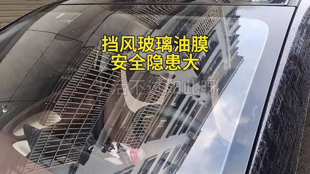 下雨天开车一定要注意!挡风玻璃油膜严重影响视线,安全隐患大。 汽车前挡风玻璃油膜太重,