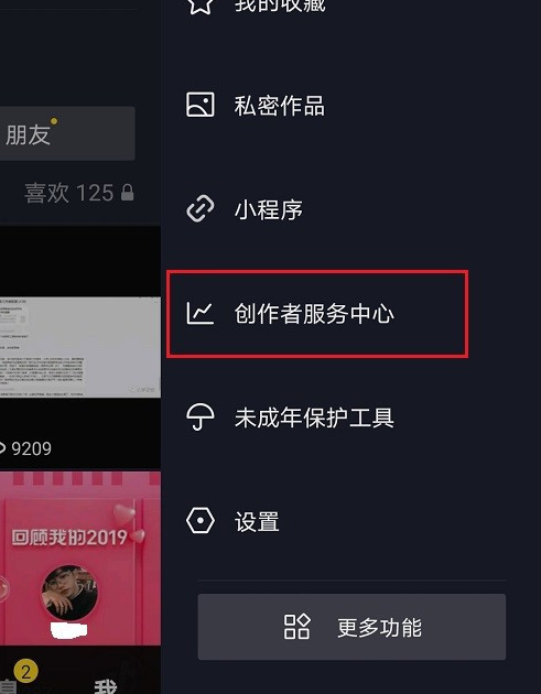 1、第一步打开抖音侧边栏,点击创作者服务中心。