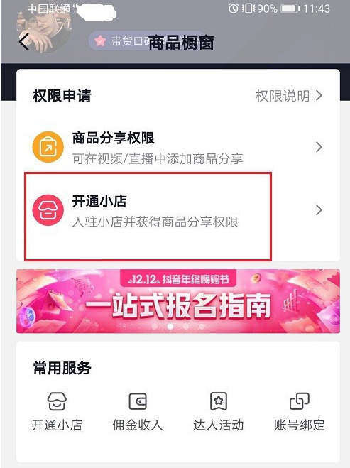 3、第三步进去商品橱窗之后,点击开通小店。