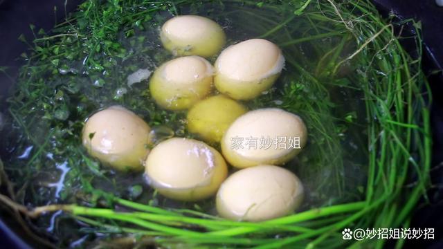 煮好关火,这时也不要急着打开锅盖,让它焖上几分钟。之后我们就可以把鸡蛋捞出来了,等鸡蛋放凉,我们剥开鸡蛋壳就可以看到,荠菜汁已经渗透到鸡蛋里面,闻着还有一股淡淡的荠菜清香。这个荠菜煮鸡蛋的方法简单实用,在三月三这天,你也别忘记为家人准备营养又美味的荠菜煮鸡蛋哦。如果今天的文章对您有帮助,那就点一个关注,点一个赞,感谢您的支持。