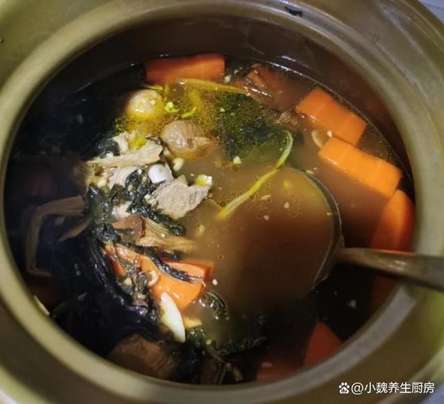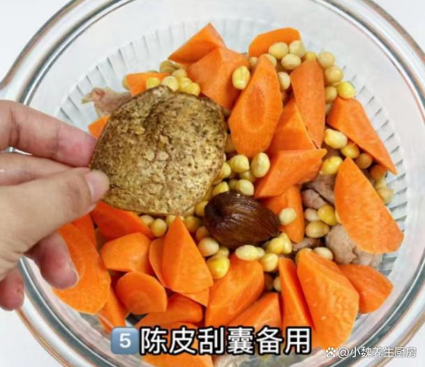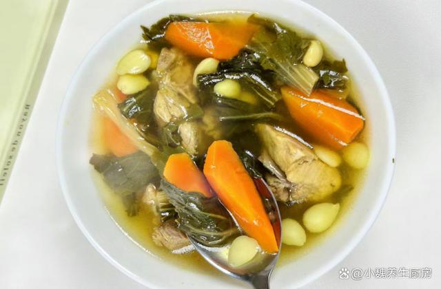 进入十一小长假,每到秋天,我们一家人都非常憧憬,但是真的到了这一天,感觉日子过的好快,马上就要结束了,又要返回自己的工作岗位,孩子也快要上学了,趁着最后几天,好好享受闲暇的日子。最近天气突然转凉,都是一阵阵的秋雨,感觉空气里闷闷的,整个人提不起精神,食欲会超级差,气色会特别差,嗓子干哑,抵抗力很低。秋天到来以后,我们可以不吃牛肉羊肉,但是一定别忘记煲汤喝,比如说这款菜干胡萝卜黄豆炖猪骨汤,南方人经常喝,汤汁鲜美十足,赶快给家里人做一做吧。“秋天一碗汤,郎中不用帮”,十月多喝这汤,营养全面,顺利度秋。  【菜干胡萝卜黄豆炖猪骨汤的正确做法】 挑选一些食材:选购胡萝卜2根(胡萝卜是一种很常见的蔬菜,价格也很便宜,含有许多胡萝卜素和多种维生素C,家里有孩子的家庭,一定要多吃它,帮助保护双眼,好处多多),生姜20克,若干个蜜枣,菜干50克(菜干是新鲜蔬菜经过晒干制作而成,非常容易储存,泡好就可以拿来炒食或煲汤),南北杏30克,干黄豆一小把,冷水和纯净水少许,生姜20克,挑选新鲜猪骨400克,黄酒少许,陈皮12克,其他调味品。 正确做法: 1:提前准备好胡萝卜,菜干,黄豆和猪骨,先把黄豆放在容器中,加上冷水浸泡一会儿,将黄豆泡发开,捞出控干水分。 2:先把生姜去皮,切成一些片状,几个蜜枣去核洗干净,南北杏用流水冲洗几遍,大葱斜切成小段,备用。 3:两根胡萝卜反复洗干净,用工具削掉外皮,改刀切成滚刀块,菜干用温水泡发开,清洗掉里面的脏东西,切成长度相同的段,备用。 4:锅中放入猪骨,放入葱段和姜片,加上足量冷水和黄酒,将其焯烫一小会儿,逼出血腥味。