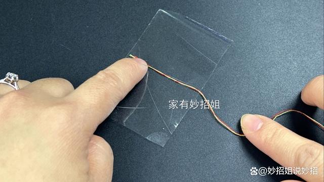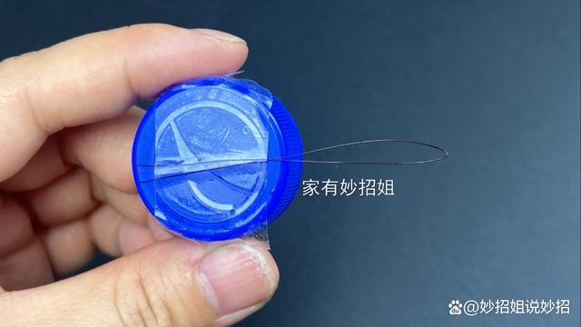 方法很简单,我们准备一个瓶盖和一根扫把上扯下来的细丝,将细丝从中间对折一下,这样就会形成一个尖角。接下来,我们再用胶布将这根细丝固定在瓶盖的表面,这样一个穿针引线的神器就制作好了。