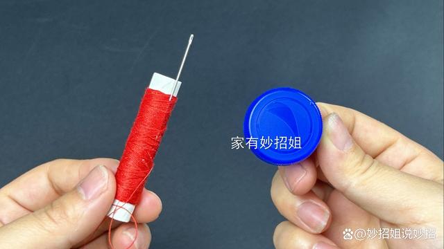妙招二:瓶盖法。 瓶盖在我们生活中很常见,比如平时喝的各种饮料、矿泉水,都会有一个瓶盖,我们将瓶盖取下来,就可以利用它制作成一个穿针引线的神器。