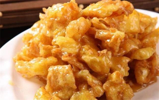 接着,将炒锅加热,加入适量的食用油,待油温六成热时,将白果沾上面糊,放入油锅中炸至金黄色,捞出沥干油分备用。 再将炒锅中的油倒掉,加入适量的清水和白糖,用小火慢慢加热,不停地搅拌,直到白糖完全融化,糖浆变得浓稠。