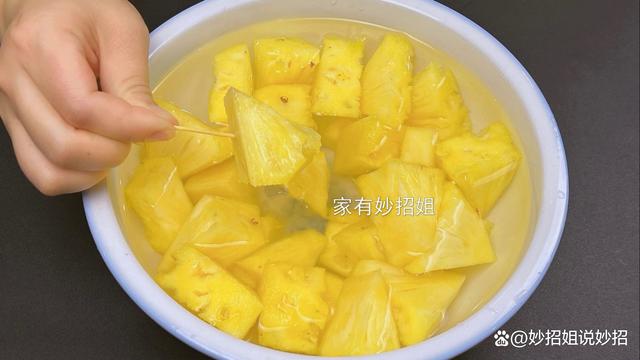 接下来再把菠萝放在这个盐水中浸泡上十几分钟的样子就可以了,这样就能有效的使菠萝中的蛋白酶和草酸钙分解,也就不会刺激我们的口腔了。而且经过盐水的浸泡,还会使菠萝的口感更加香甜。如果今天的文章对您有帮助,那就点一个关注,点一个赞,感谢您的支持。