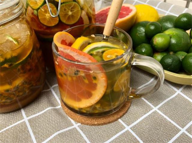 接下来,让我们来看看百香果柠檬茶的做法。首先,将百香果切开,用勺子将果肉挖出放入杯中。然后,将柠檬切成片,也放入杯中。接着,加入适量的冰糖和蜂蜜,用搅拌棒搅拌均匀。