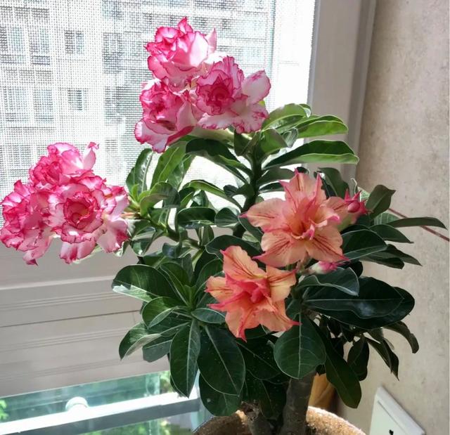 而且长寿花的名字吉祥,代表的正是健康和长寿,听这个名字就非常让人喜欢。而长寿花的寿命很长,可以存活数年,培养方式简单,叶片又饱满,可以储存大量的水分,当然,根系比较薄弱,都是一些虚根,所以喜欢生长在透气排水好的小盆里,如果花盆太大,土壤通透性还不好,便容易发生损伤,对生长不利。而且浇水太多,容易导致叶片生长速度快,从而降低开花量。 沙漠玫瑰