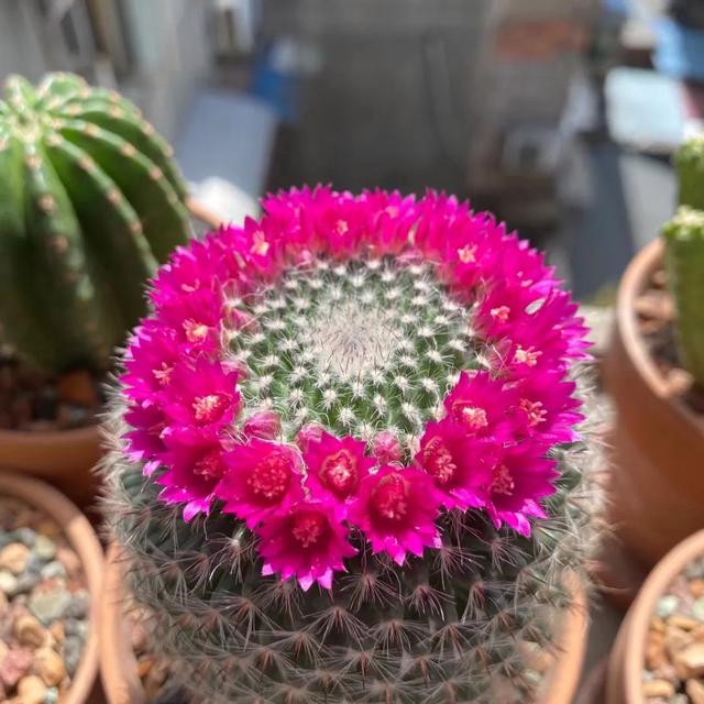 沙漠玫瑰一个非常有特色的花,也叫天宝花,枝干粗壮发达,憨态可掬,搭配靓丽的花色,使得整个盆景的颜值得以提升,把它布置在桌面,窗台或花架,能使得整个环境的氛围变得更加欢快活泼。而沙漠玫瑰的花期比较漫长,一年四季能开三季,为了时刻能带来更多的美好,培养方式要谨慎,尤其是在花盆的选择上,花盆越小,根系越发达,越能够促进植物开花。当然,平时要多放在有光的区域,光照充足的情况下,生长也会旺盛。 仙人球