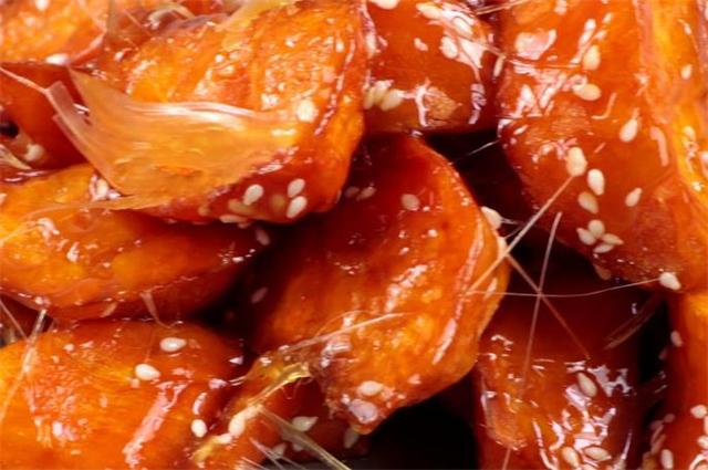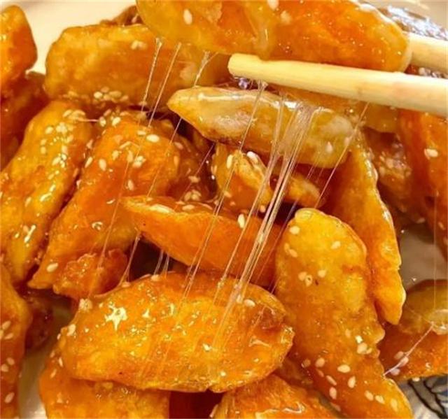 接下来,让我们来看看制作拔丝红薯的步骤。首先,将红薯去皮,切成适当大小的块。然后将炒锅加热,加入适量的食用油,待油温六成热时,将红薯块放入锅中,用中小火炸至金黄色,捞出沥干油分备用。