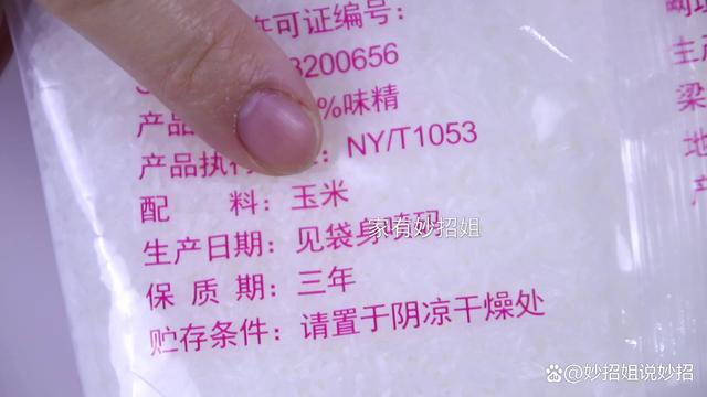 首先来了解一下味精,我们常见的味精就是白色的长条形晶体,一颗一颗的。我们翻到味精的包装反面,找到它的配料表就可以发现,它的配料非常干净。像我买的这包味精,它的配料就是玉米,其他什么都没有。其实味精,它主要是以小麦或大豆、玉米之类的为原材料,经过发酵加工制作而成的。
