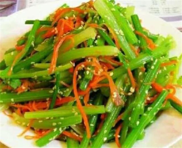 最后,让我们来看看一道美味的凉拌芹菜的做法吧!将芹菜和胡萝卜切成丝,加入适量的盐、醋、糖、生抽、香油等调料进行凉拌。然后加入一些花生米和蒜末、姜末、辣椒油等调料来增加口感和风味。这样做出来的凉拌芹菜清脆爽口,非常适合夏天食用。