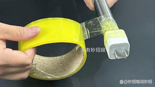 妙用四:改造撑衣架。 废旧的充电头,我们还可以将它改造成一个撑衣架。先准备一根棍子和一个充电头,用胶布将充电头固定在棍子的一端。尽量多缠绕一些胶布,使它更加牢固一点。