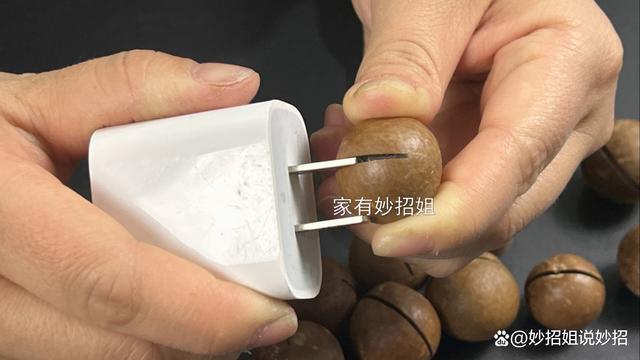 此外,平时我们吃的核桃、夏威夷果等坚果,如果没有开壳器的话,就很难剥开来。其实这个时候,我们只要将充电头的金属插头,插进坚果的开口处,然后旋转一下,就能轻松打开坚果了,方便省力又好用。