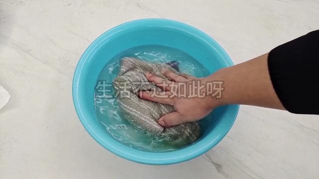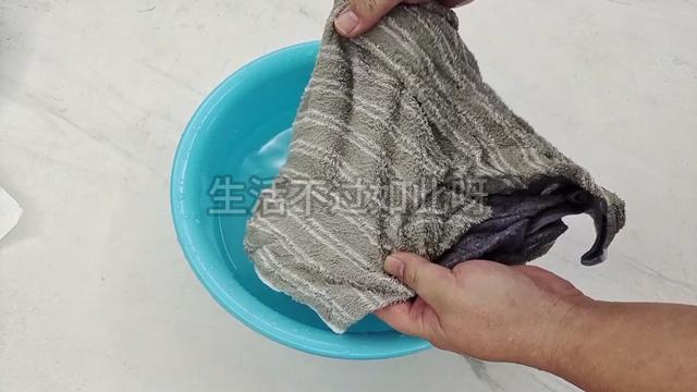 十分钟后,用双手简单揉搓毛巾,你会发现水变黄了,毛巾上顽固的污渍也一一被清除了。