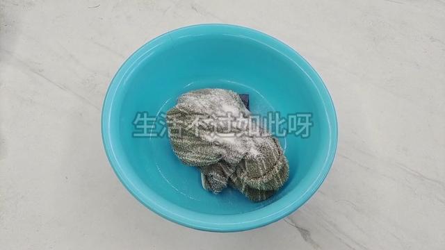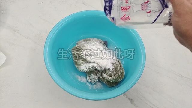 然后,加入一些小苏打,小苏打具有强大的去污作用,能够有效清除毛巾上的皮屑和油腻。