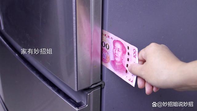 除此之外,我们还要定期的检查一下冰箱四周的密封条,看看它是否出现老化变形的情况。检查的方法很简单,我们只需要拿张钱,把钱夹在冰箱门边上,然后抽动钱,看它是否卡得紧。如果钱一下子就抽出来,没有一点阻力的话,就说明密封条已经老化变形了。但如果在抽钱的过程中有阻力,这就说明冰箱的密封性还是比较好的。