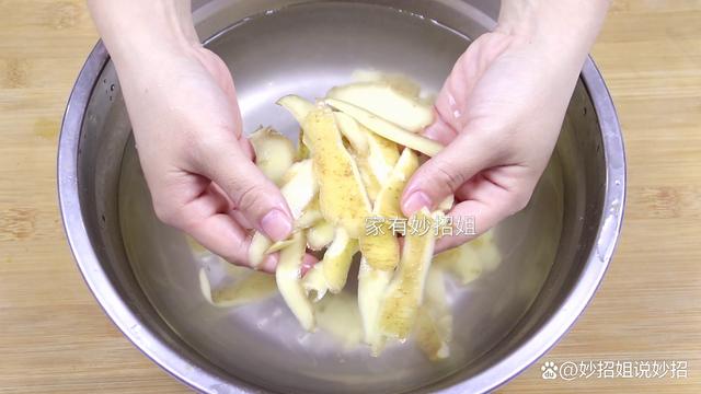 妙用四:清除肉类的腥味。 在日常烹饪菜肴的过程中,我们经常需要清洗一些肉类的食材,但由于肉类的会有一些油脂,还会有一股肉腥味,每次清洗都比较费时费力。其实清洗肉类时,我们也可以利用上土豆皮。先把削下来的土豆皮放在碗中,然后倒入一些清水把它泡一泡,将里面的淀粉给浸泡出来。