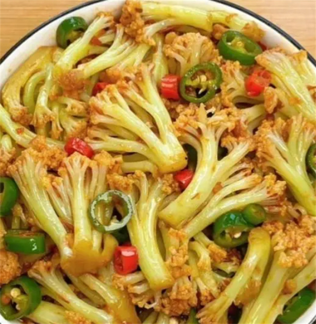 二、干锅花菜 食材:花菜、小米辣、蒜末、线椒、豆瓣酱、生抽、蚝油、白糖、盐 做法: 1. 先将花菜焯水1分钟,捞出备用。 2. 锅中加热油,爆香蒜末、小米辣和豆瓣酱,形成红油。 3. 倒入花菜,翻炒片刻后加入生抽、蚝油、白糖和盐,翻炒入味。 这款干锅花菜香辣可口,是下饭的绝佳选择,制作简单,却美味无比。 三、炒香菇 食材:香菇、线椒、小米辣、蒜末、葱、生抽、蚝油、淀粉 做法: 1. 锅中热油,加入蒜末、小米辣、葱段炒香。 2. 倒入香菇翻炒2分钟,加入生抽、蚝油、淀粉水,继续翻炒均匀。 这款炒香菇简单而美味,香菇的鲜美与香辣调味相得益彰,让人垂涎欲滴。