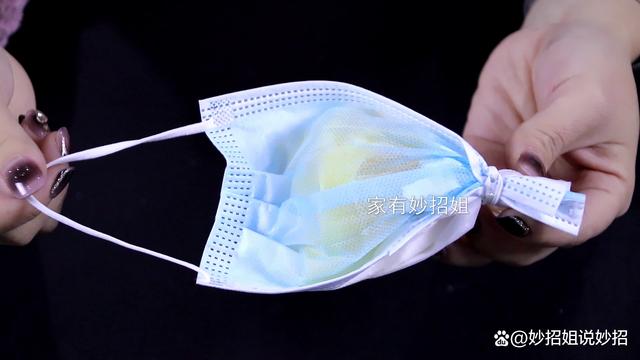 最后,我们再用刚刚取出来的钢丝条把口罩扎紧,那么这样一个清洁马桶的口罩包就制作好了。