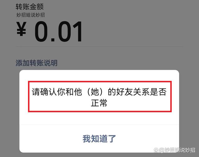 返回那位好友的聊天界面,选择右上角的“ ”号,然后选择“转账”。接着,给对方随便输入一个金额然后点击“确定”按钮,尝试进行转账操作。如果这时弹出的窗口赫然写着“你不是收款方的好友”,那么很遗憾,对方已经将你从他的好友列表中删除。