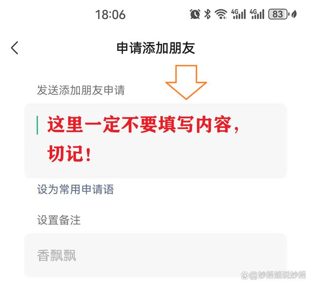 但是,此时还有一个步骤需要注意。在发送添加好友申请时,会弹出一个“发送添加朋友申请”的选项。你需要清空这个选项的内容,然后直接点击“发送”按钮。这样就可以在对方不接收任何消息的情况下,重新添加回误删的好友了。