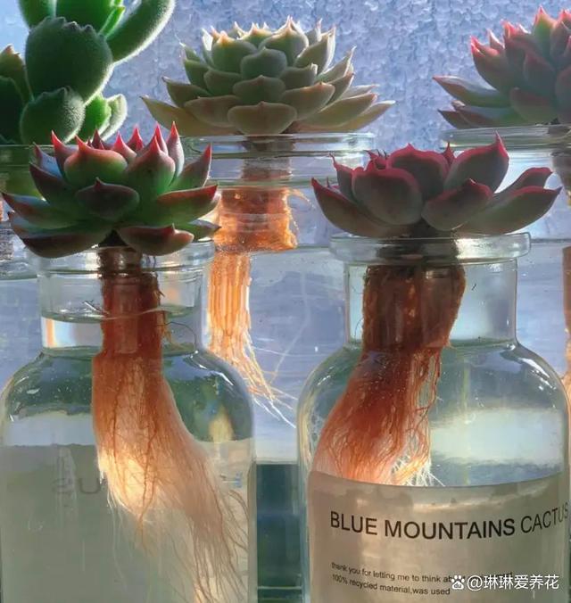 水培的多肉,也是可以正常发根成活的,根系能吸收大量的水分,此时的多肉叶子会达到十分饱满的状态,但是自身的抵抗力很差,由于水中没有多余的营养元素,到了夏天是很容易化水的,水培的多肉,如果只是在纯水养护的情况下,存活的时间并不会太长。